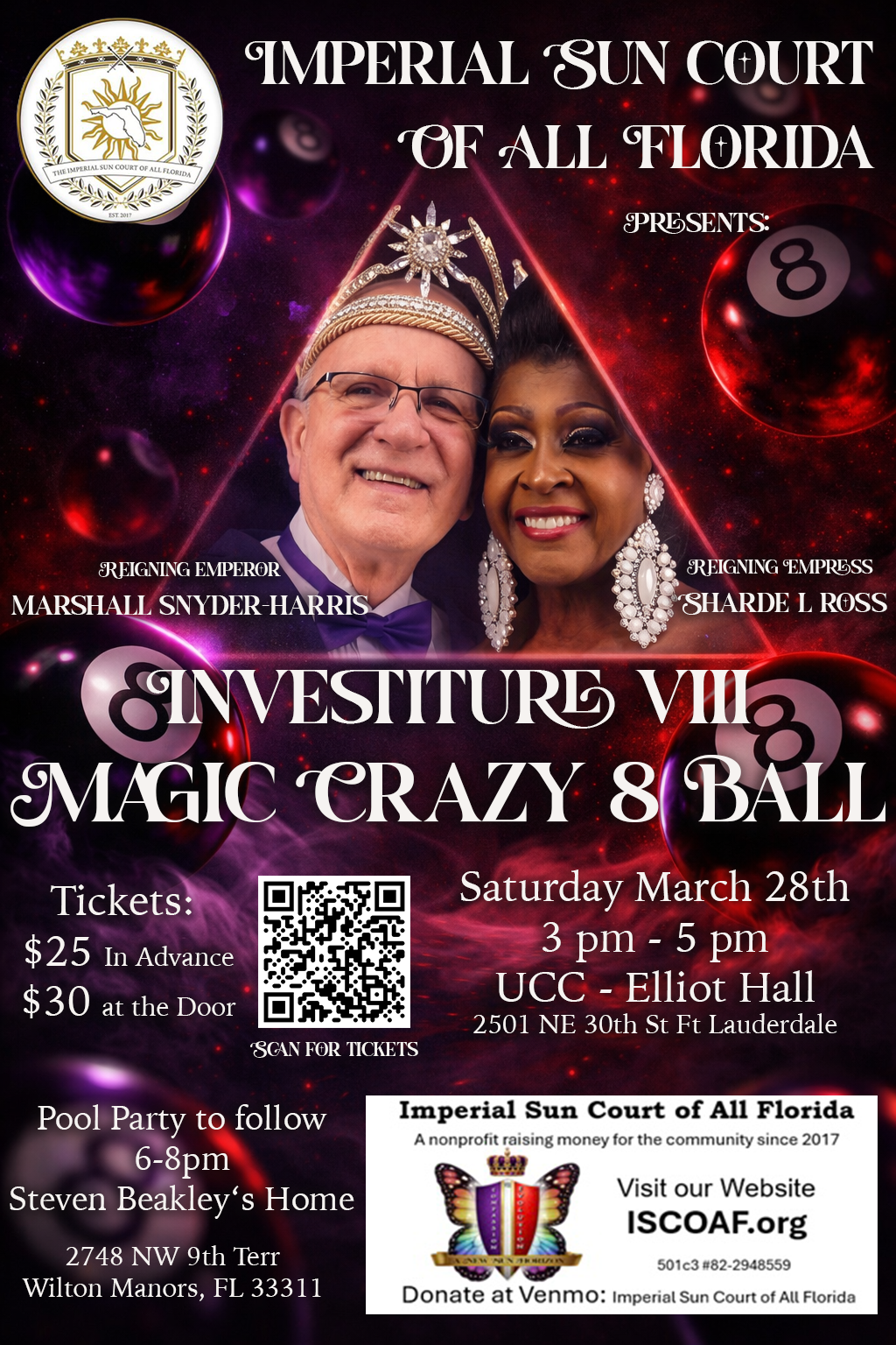 Step into the swirl of glamour, luck, and a little mystery at Investiture VIII: Magic Crazy 8 Ball. Join us for an afternoon celebration filled with community, cocktails, and that unmistakable Court energy. $25 presale, $30 day of or at the door.